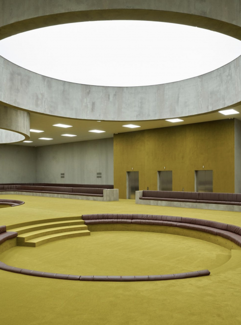 In collaboration with Bureau Betak, Gucci decorated their runway in complimentary autumnal shades of Ganache, Toxic Yellow and Pale Bean for their A/W 23/24 womenswear catwalk show at Milan Fashion Week. Spectators were fully immersed, sitting directly in the centre of the show.