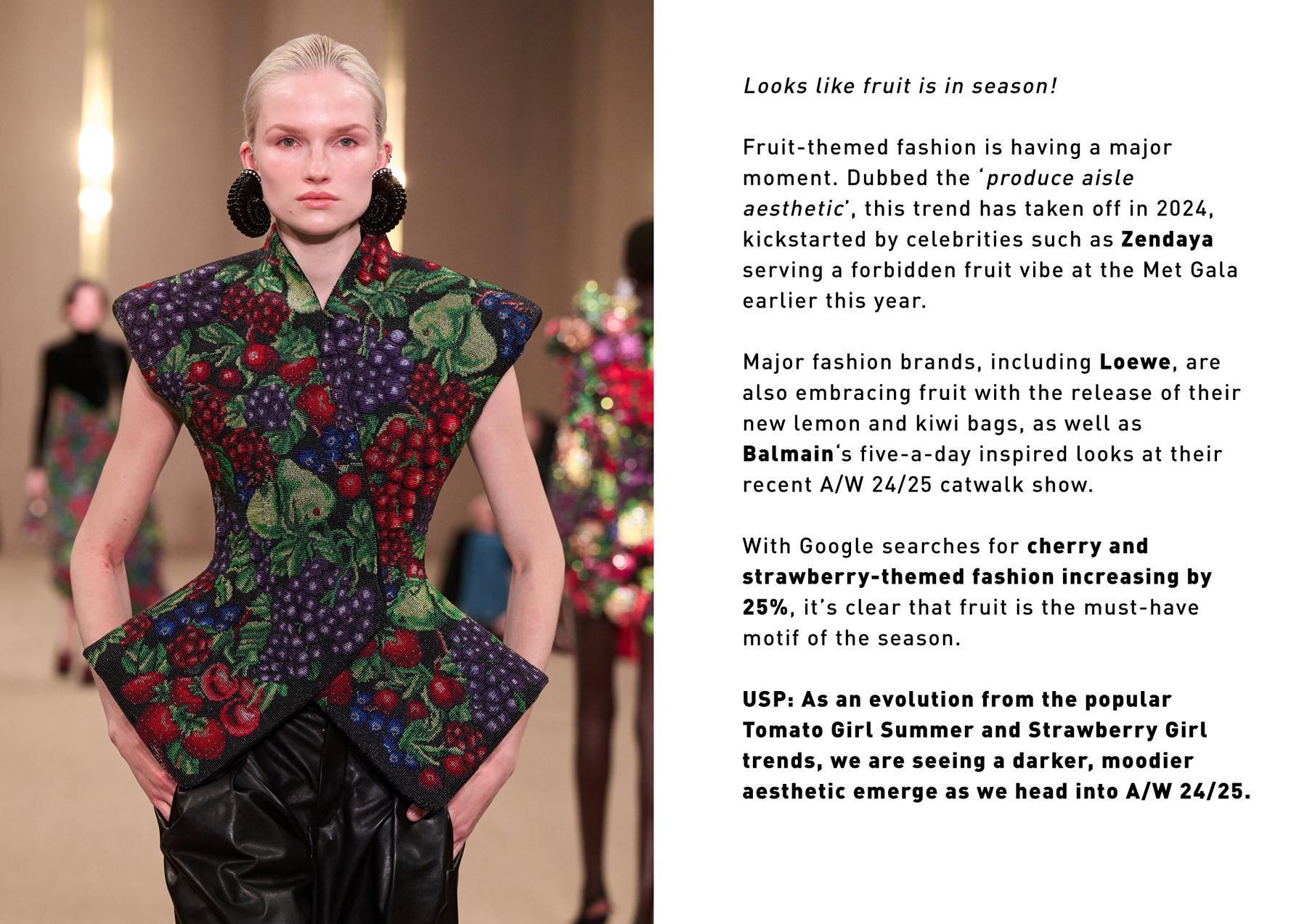 USP Inspire August 26, 2024 USP INSPIRE: FORBIDDEN FRUIT Download Report Images 2020sACCESSORIESBagsBeautyBrownsCatwalk InspirationColorColourDarksDesignGreensLilacsNailsPatternPrintPrint & PatternPurplesRedsreportsUSP InspireWomensWomenswear