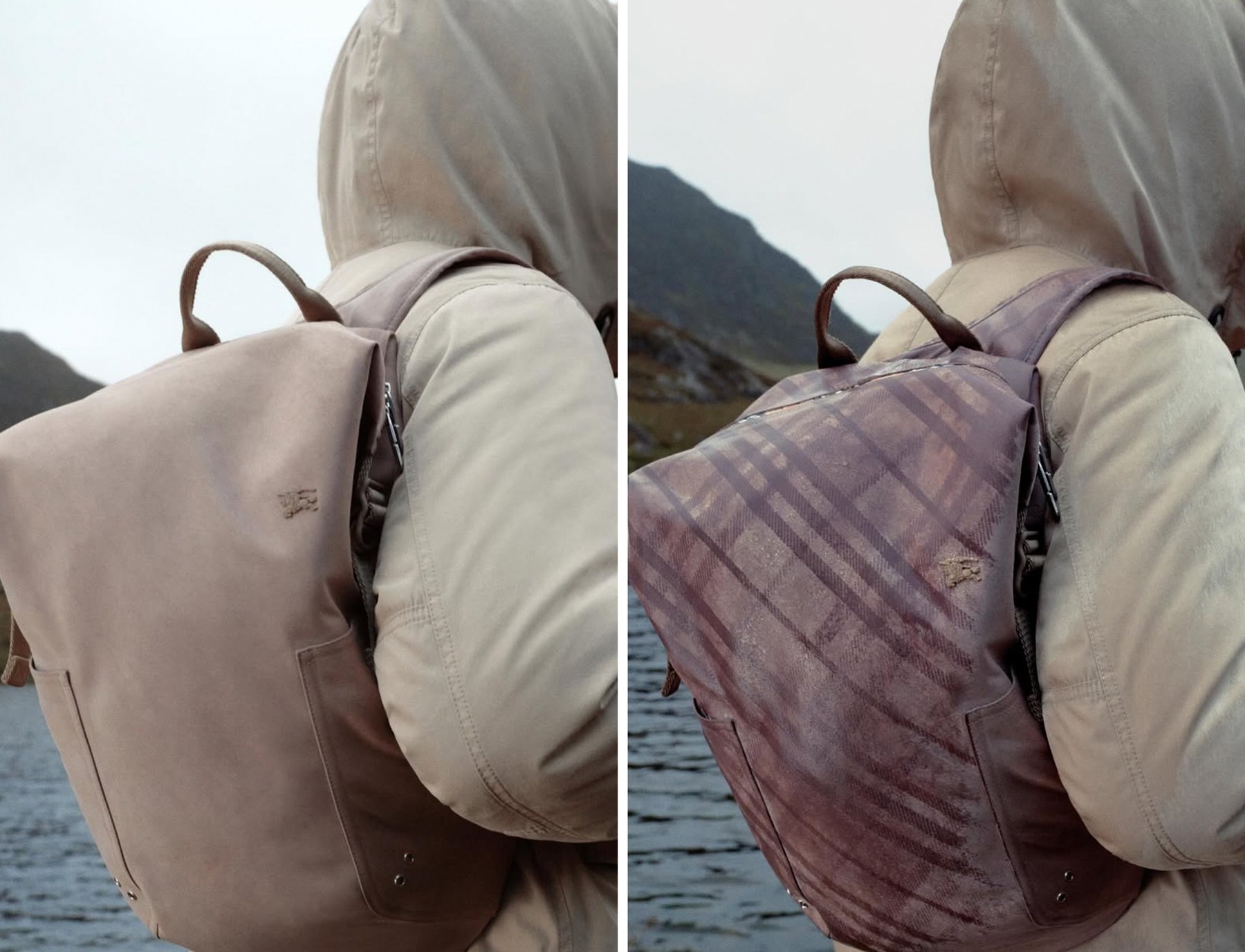 Burberry have launched the campaign for their new Gabardine Collection showing a new stand out piece – a backpack that, once wet, shows the iconic Burberry Check.