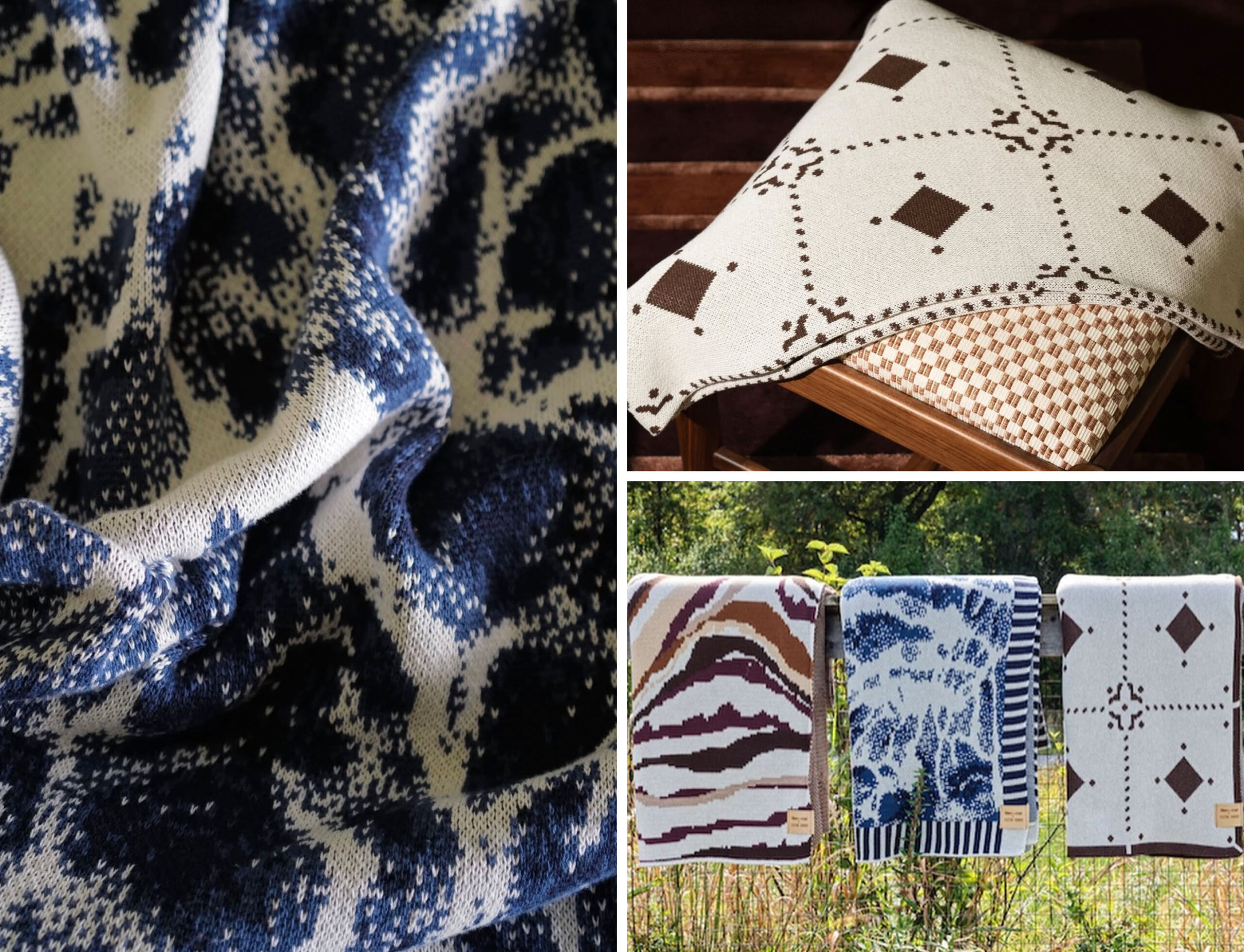 Bien Mal creates thoughtfully designed knit blankets that function visual stories, using bold patterns, and colours to capture landscapes, memories, and cultural motifs.
