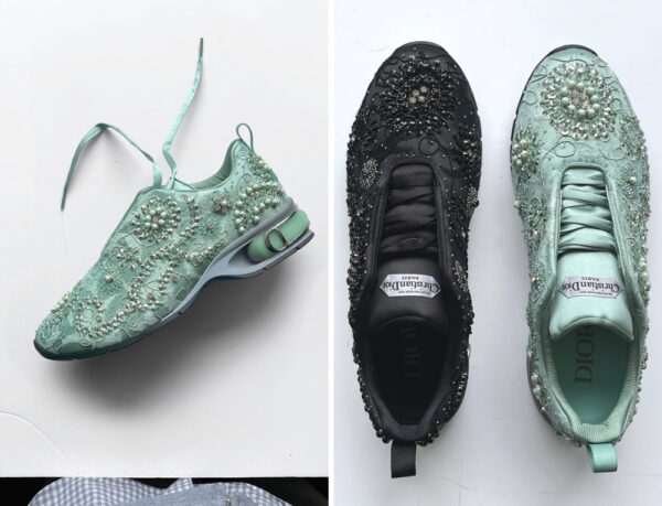 Dior Winter 2025 sneakers, created from archival couture embroidery, blend decorative motifs with modern hybrid shapes and constructions. Traditional menswear patterns are soften with…